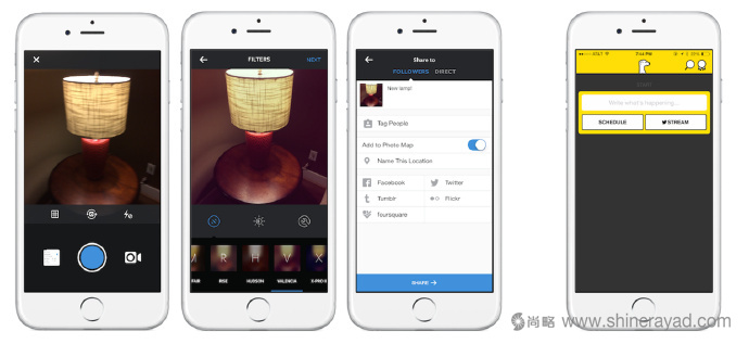 發布到Meerkat上只用點一下,發布到Instagram上只用點三下