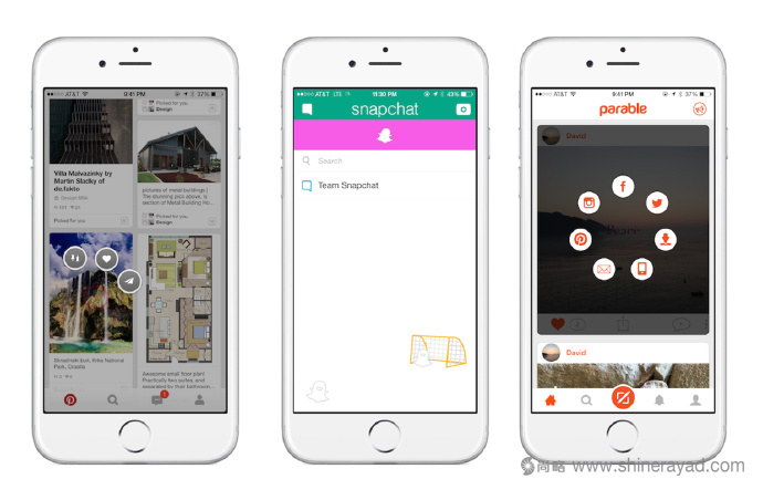 Pinterest的分享動畫,SnapChat的刷新動畫,Parable的分享動畫