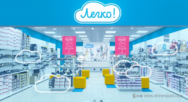 零售連鎖專賣店品牌形象設(shè)計的重點:一起積極利用品牌的鮮艷色彩(藍,白,黃,粉紅色的額外)、以及標志、人和鞋子的照片。從而創(chuàng)造美好的可識別的品牌身份,彰顯品牌的活力和友善。