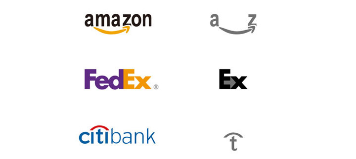 亞馬遜的Logo大家都知道是一個(gè)笑臉,但是還隱藏了一個(gè)從a到z,代表著亞馬遜便捷順暢的服務(wù)。Fedex聯(lián)邦快遞作為一個(gè)快遞公司的slogan是使命必達(dá)!使命必達(dá)就是快!EX中間的負(fù)形箭頭。Citiback花旗銀行,t上部的一個(gè)曲線與t構(gòu)成了一把傘。銀行嘛,安全很重要。