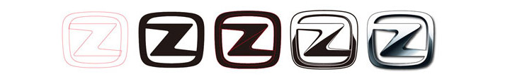 做過Logo的人都知道,在Logo中,最難做的是車標(biāo)。因?yàn)樗粌H僅需要你設(shè)計(jì)上的規(guī)范,寓意上的好,還需要結(jié)構(gòu)上的處理,質(zhì)感的疊加。大家可以看看這個(gè)眾泰汽車的飛機(jī)稿,一步步從線稿到墨稿到黑白稿,分結(jié)構(gòu),加質(zhì)感,是不是一步步效果就好了很多。