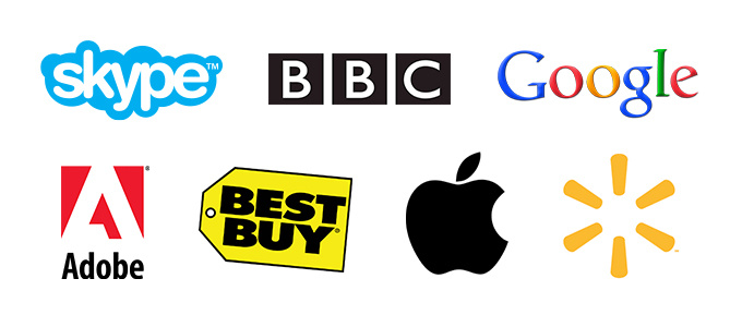 以下是一些流行品牌的風格指南:Skype(PDF,品牌頁面), BestBuy(歐洲指南,)BBC, Adobe, Apple, Google, and Walmart。想要更多?看看Logo Design