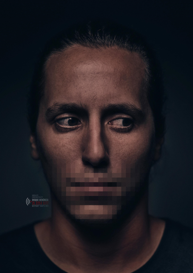 上海尚略廣告策劃設計公司分享的這則平面廣告創意設計主要是想要鼓勵人們通過撥打匿名熱線迪斯尼Denuncia舉報犯罪行為,用眼神閃爍不定、嘴巴打上馬賽克的男人、女人和老人做廣告,營造出了一種神秘、詭譎的氣氛,既凸顯了主題,告知大家遇事保持冷靜,撥打舉報電話,又吸人眼球,引起共鳴。