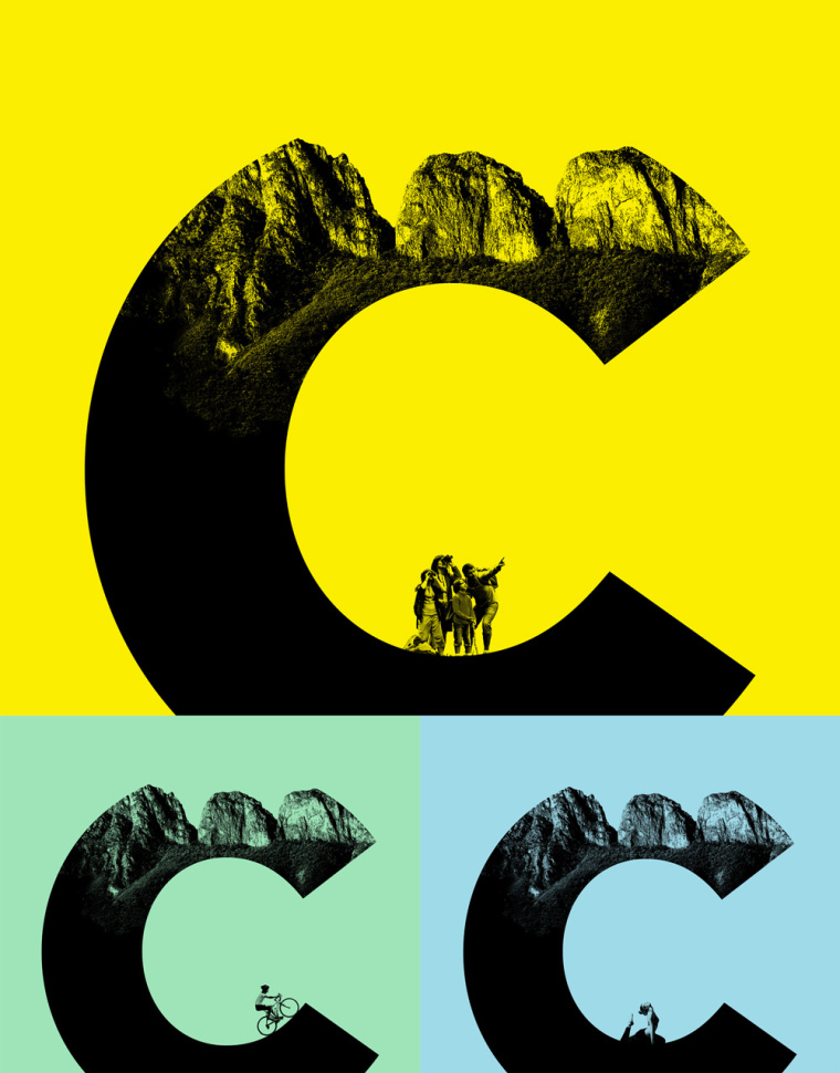 新的標(biāo)志將目的地定位為一個(gè)極具時(shí)尚氣息的REI-ish品牌,讓參觀山脈變得更加刺激。一個(gè)巨大的“C”,上面包含著山頂?shù)恼掌褂萌藗兣恼盏姆绞剑屗幸环N超現(xiàn)實(shí)主義的氛圍。