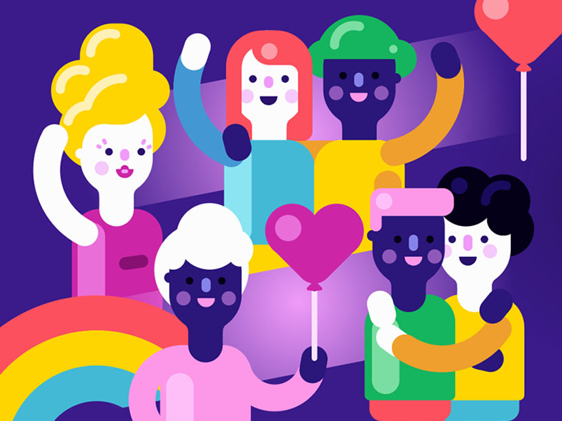 雖然彩虹色在自然界中具有并排的外觀,但設計師可以而且應該采取藝術自由。只要顏色全在那里,您就可以將它們分開并放置在您的設計中。此技術在字符圖示或模式中特別有用,您可以將單個顏色歸因于單獨的元素。聽起來你可能正在減少彩虹的力量,但想想它就像在你的設計上灑上彩虹一樣。當您將整個構圖視為一個整體時,它們匯集在一起??,為您提供生動的彩虹的全部影響。