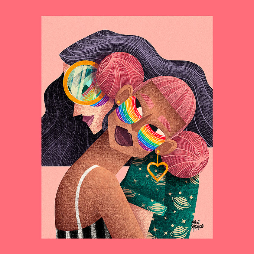 在這種情況下,您可以使用重點巧妙地將彩虹巧妙地融入設計的特定部分:例如衣服或頭發。這將使您的設計具有炫耀的風格,同時仍然贊美其他元素。您還可以將彩虹變成設計中隱藏的復活節彩蛋。 這對觀眾來說是一個驚喜。