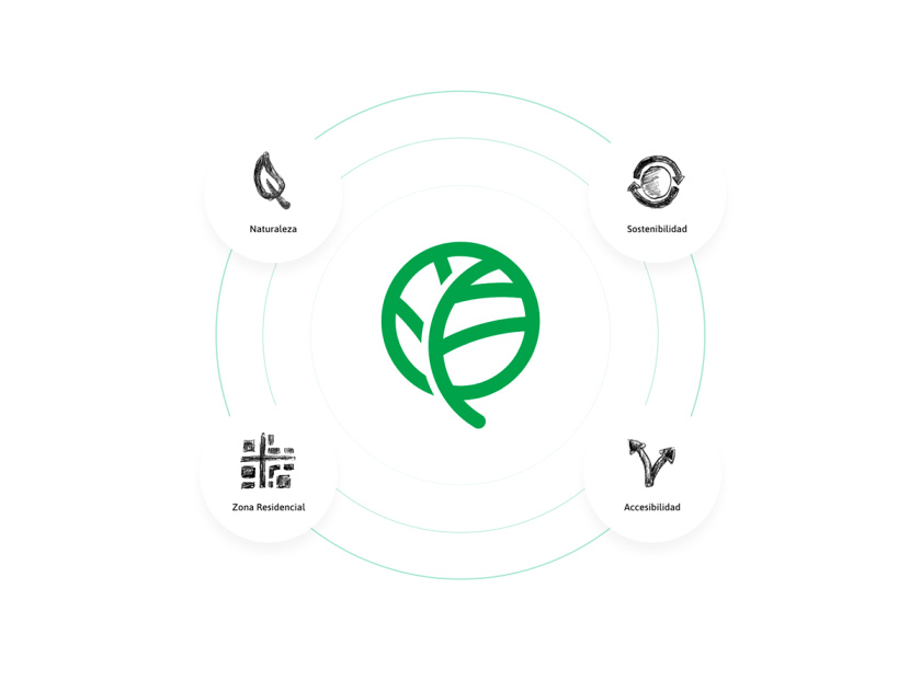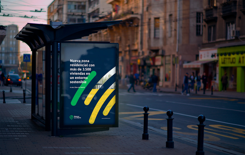 Retamar住宅社區中心一個可持續的環境中3 500多戶人家的新居住區。其logo設計包含了代表可持續發展的綠葉,社區的分區規劃,以及循環發展,增長發展等寓意。vi設計的輔助圖形由同心圓代表的不同線條組成,給人非常速度動感的感覺。
