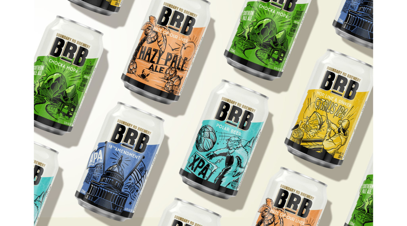 BRB釀造公司的啤酒易拉罐包裝設計使用一致的品牌logo,該logo可以使每個易拉罐上的插圖都有自己獨特的故事和感覺。每個插圖都以啤酒花為主要特征,是對啤酒釀造藝術的有趣演繹,證明了該啤酒廠具有時尚感和幽默感。