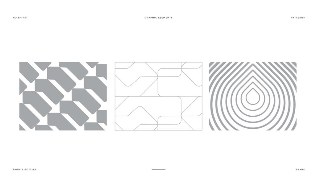 另一方面,在vi設(shè)計(jì)中,我們給字幕和一般文本使用了特定的字體,傳達(dá)出更輕盈流暢的信息,使這些文本具有很好的可讀性。與項(xiàng)目相關(guān)的一組不同風(fēng)格的圖案也被使用,創(chuàng)造了一個(gè)復(fù)雜而完整的系統(tǒng),幫助其目標(biāo)受眾識(shí)別NoThirst品牌在競(jìng)爭(zhēng)市場(chǎng)的定位,用你的產(chǎn)品展示態(tài)度、現(xiàn)代性和可持續(xù)性。