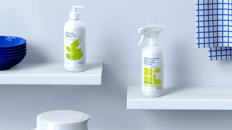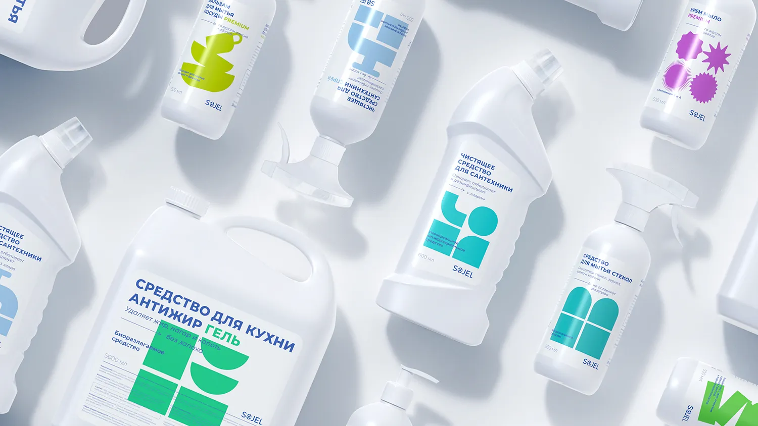 包裝設計公司面臨的任務是開發Sojel的轉型產品——家庭化學家庭清潔劑產品。該公司希望放棄舊品牌定位,進入新的市場,達到新的目標受眾。擴大產品種類和新產品的出現意味著放棄了當時所有現有的圖形。