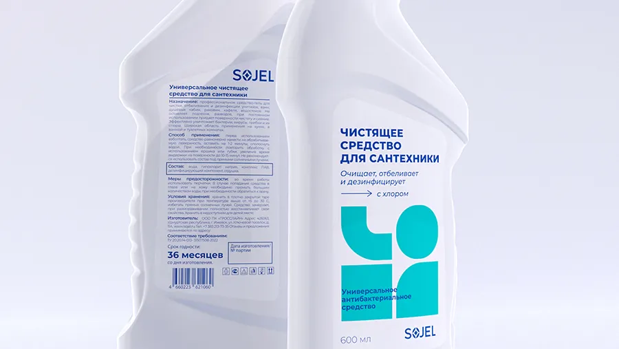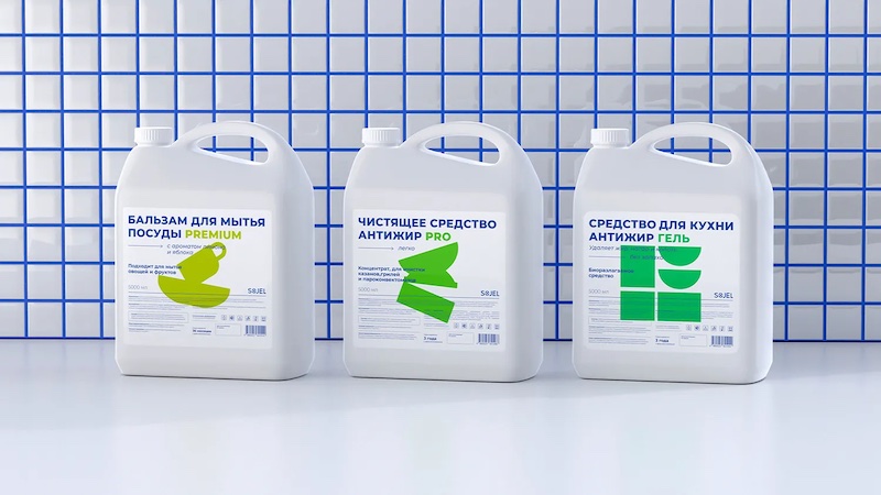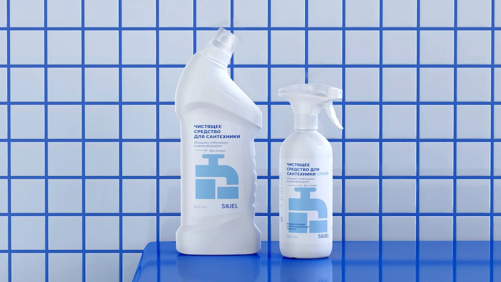 顏色方案的選擇考慮到了家用化學品市場的特點。選擇飽和藍色作為品牌和包裝上的印刷字體的基礎顏色。首先,它使我們能夠保持Sojel汽車和Sojel家居的連續性,其次,它創造了必要的清潔感。此外,它還幫助我們喚起了大量SKU產品包裝線的統一感。