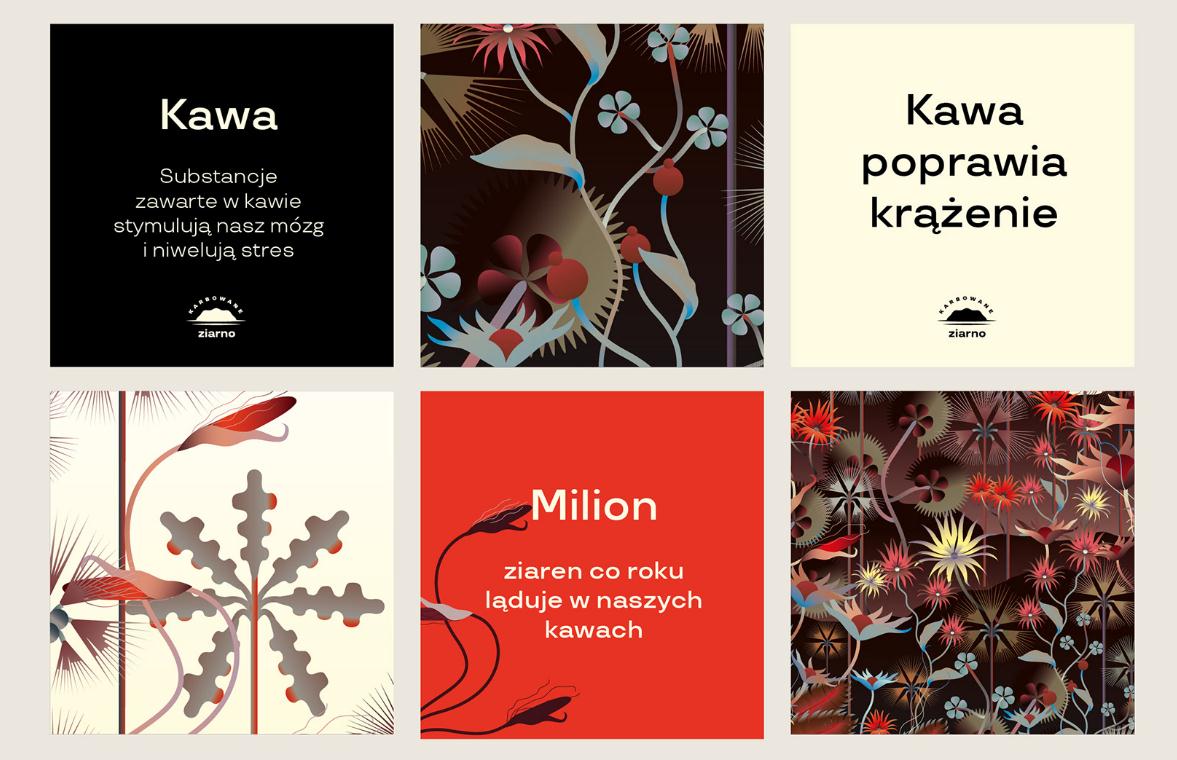 品牌視覺logo設計是關于生長在危地馬拉和巴西咖啡種植園斜坡上的咖啡的故事,包裝設計也是表達這樣故事的插畫。Karbowane Ziarno生長在野生、未馴服的自然環境中。就像叢林本身一樣,Karbowane Ziarno擁有一種令人不安但迷人的吸引力。
