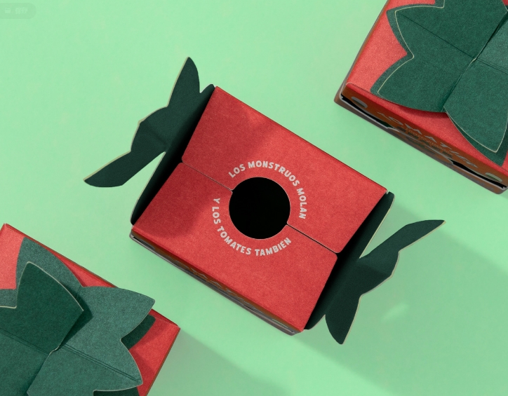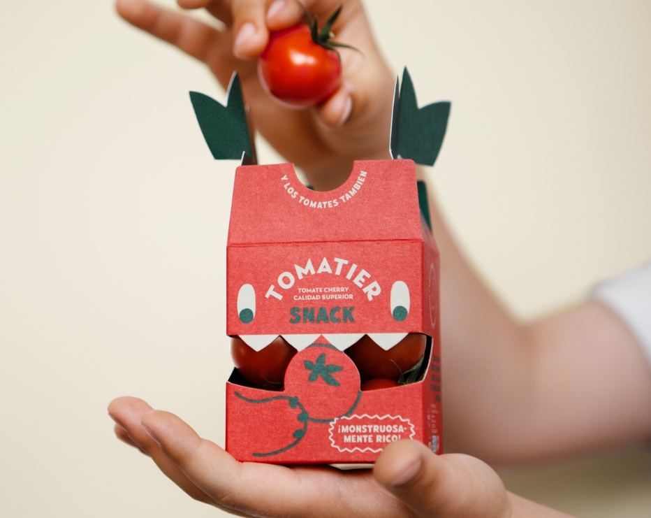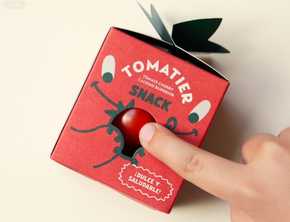 誰說吃西紅柿很無聊,而且只適合成年人吃?包裝設計公司的建議是將一盒8-10個櫻桃番茄的訂單轉化為一個有趣的解決方案,提供講故事的機會來發展溝通。這是關于一個可愛的怪物,他喜歡吞噬西紅柿,甚至有了自己的外表。他的嘴上的鬼臉是讓你看到里面產品的窗戶,而他形狀像番茄莖的徽章將起到特殊的閉合作用。